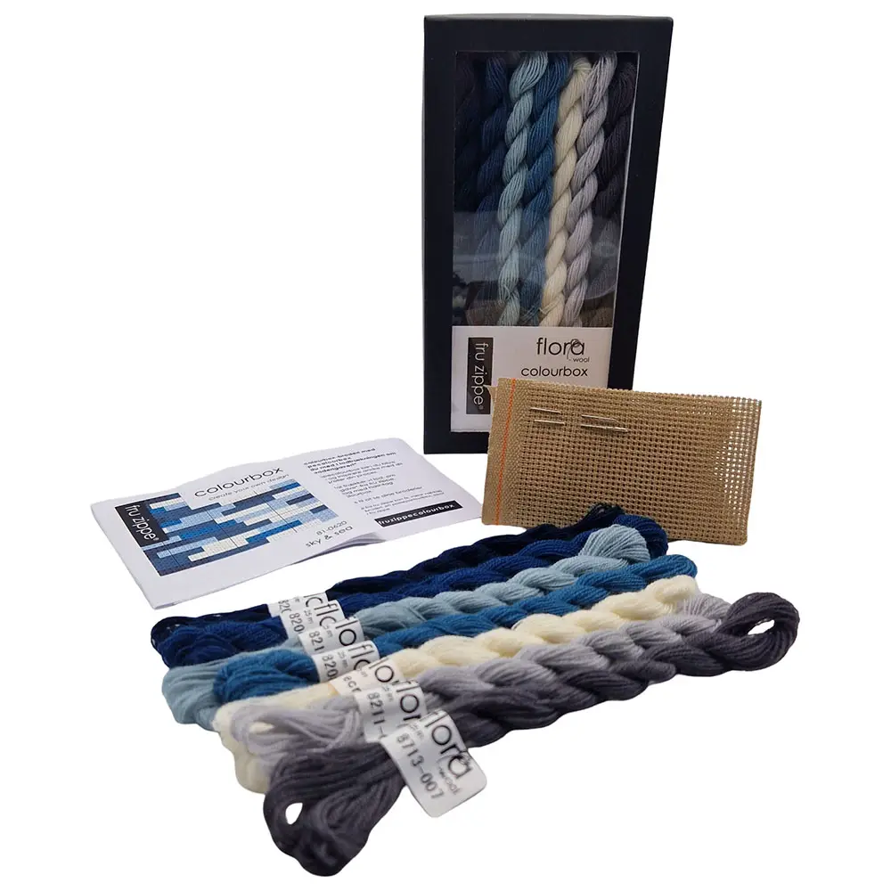 colourbox indeholder flora wool, stramaj, og nåle samt et lille hæfte med enkle inspirationsforslag, -men det er friheden til selv at designe, der er i centrum, at finde sit eget udtryk.