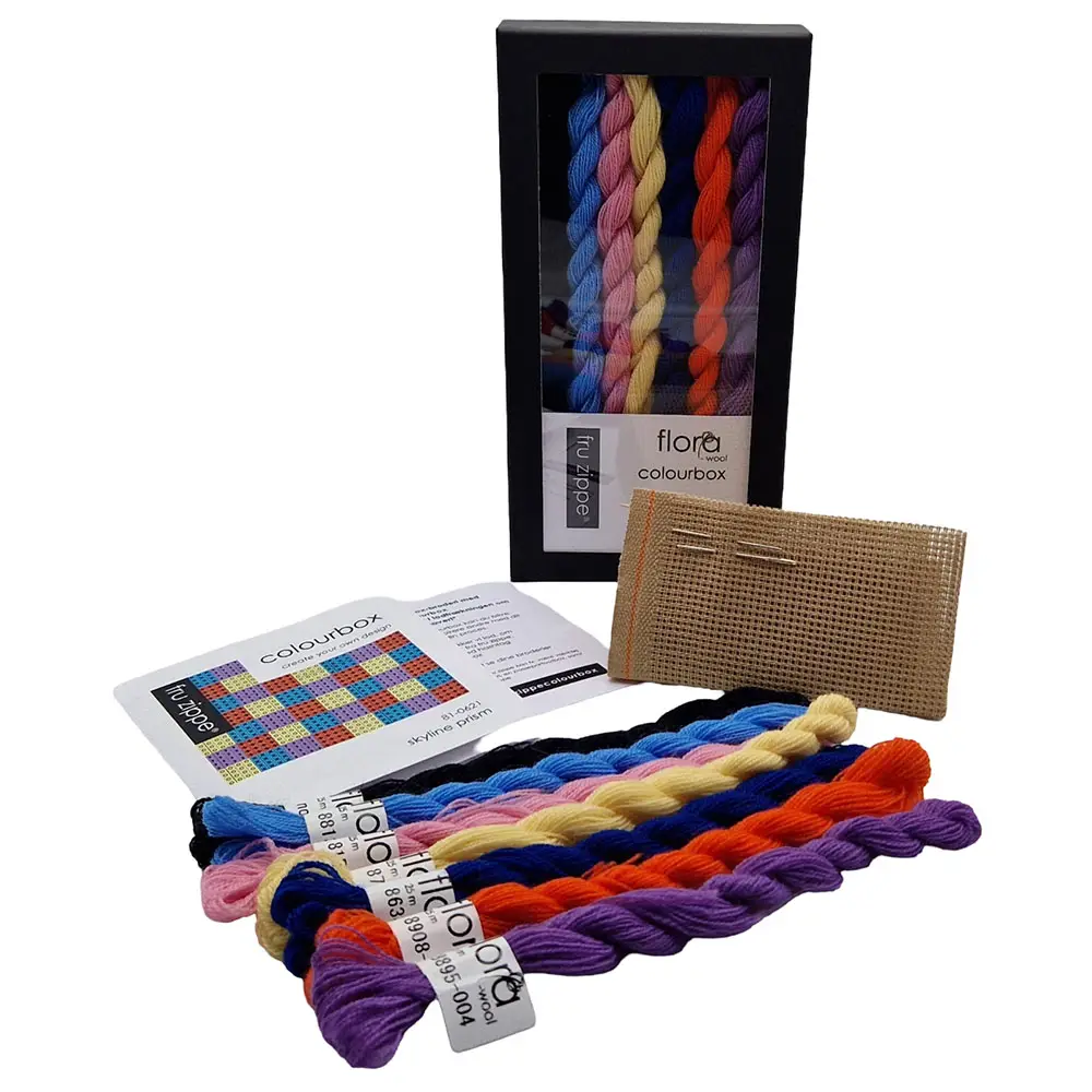 colourbox indeholder flora wool, stramaj, og nåle samt et lille hæfte med enkle inspirationsforslag, -men det er friheden til selv at designe, der er i centrum, at finde sit eget udtryk.